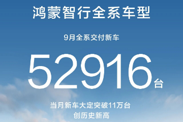 鸿蒙智行全系9月交付52916台,环比增长18.7%