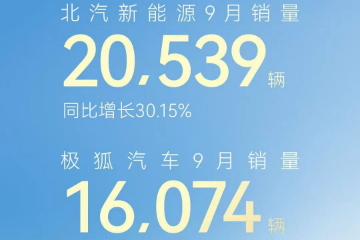 北汽新能源9月销量20,539辆,同比增长30.2%,环比增长51.8%。其中,北汽极狐9月销量16,074辆,同比增长47.7%,环比增长52.3%。