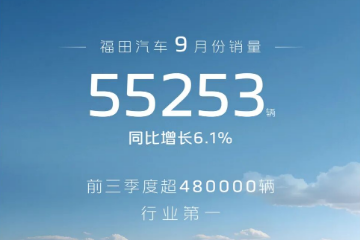 北汽福田汽车9月销量55,253辆,同比增长6.1%,环比增长7.5%;前三季度销量超48万辆。