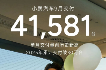 小鹏汽车9月交付新车41,581台,创历史新高,同比增长95%,环比增长10%;1-9月累计交付新车313,196台,同比增长218%。 9月,小鹏MONA M03交付超10,000台,上市至今累计交付超18万台,并且连续13个月交付破万台。