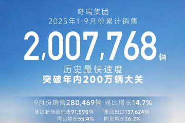 奇瑞集团9月销量28万辆,前三季度累计超200万辆