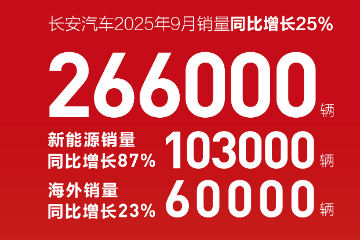 长安汽车9月销量26.6万辆,同比增长24.9%